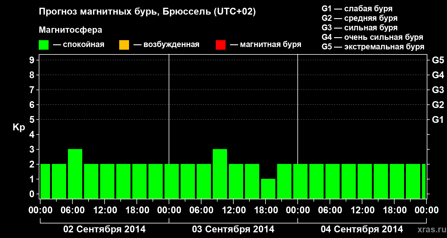 Прогноз магнитных бурь в Брюсселе — 2 сентября 2014 года