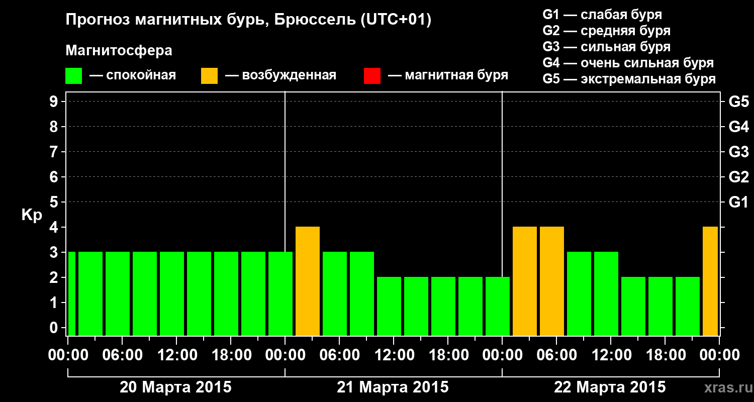 Прогноз магнитных бурь в Брюсселе — 20 марта 2015 года