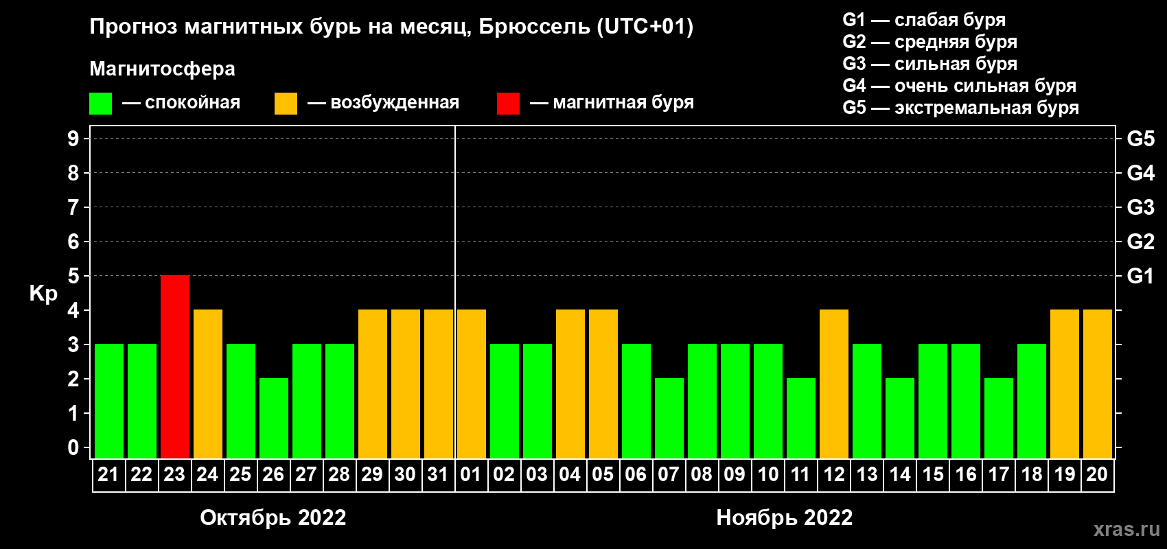 Прогноз магнитных бурь в Брюсселе — 21 октября 2022 года