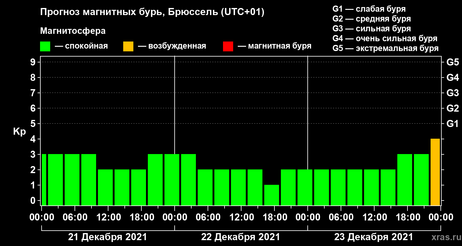 Прогноз магнитных бурь в Брюсселе — 21 декабря 2021 года