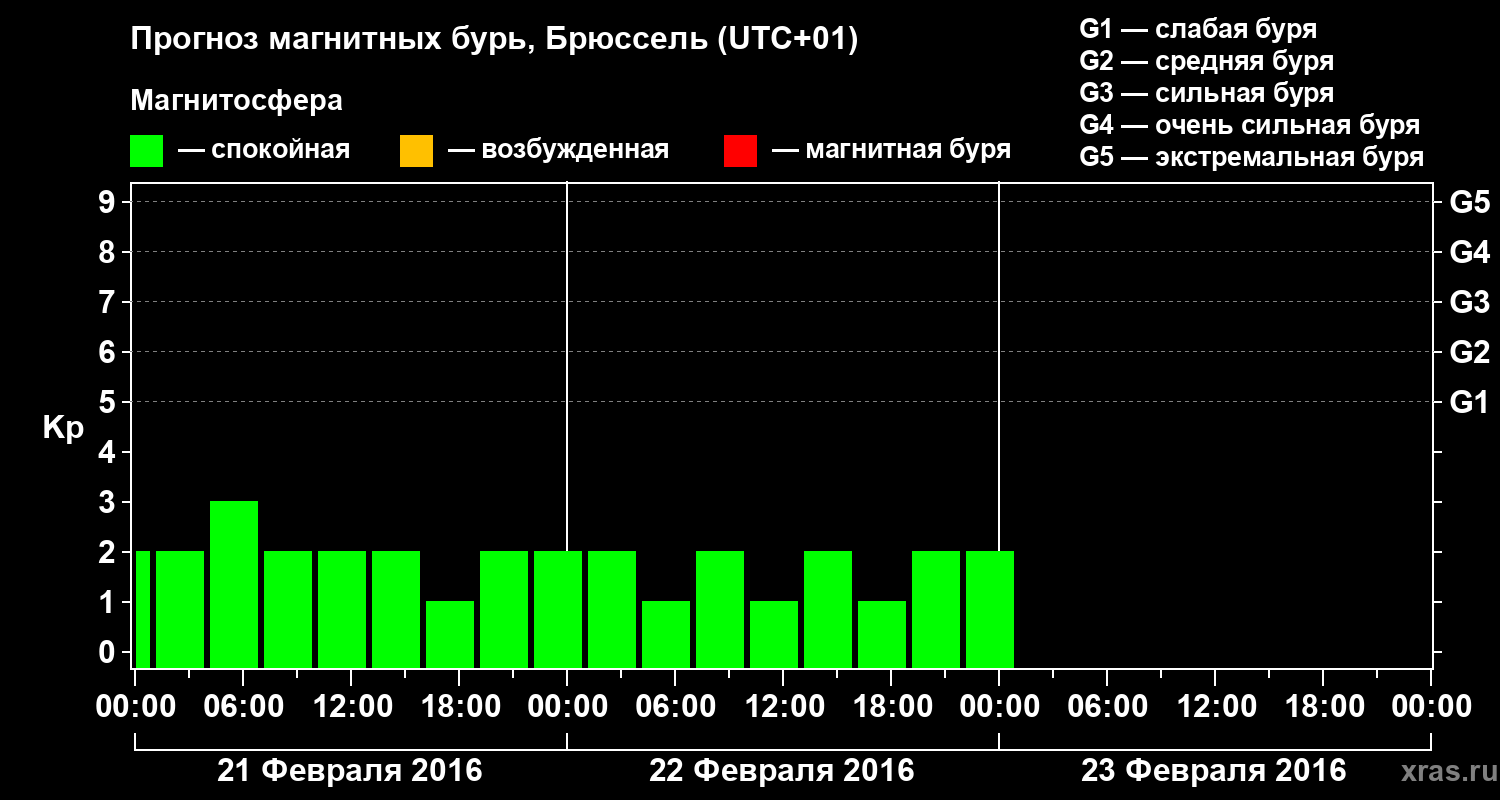Прогноз магнитных бурь в Брюсселе — 21 февраля 2016 года