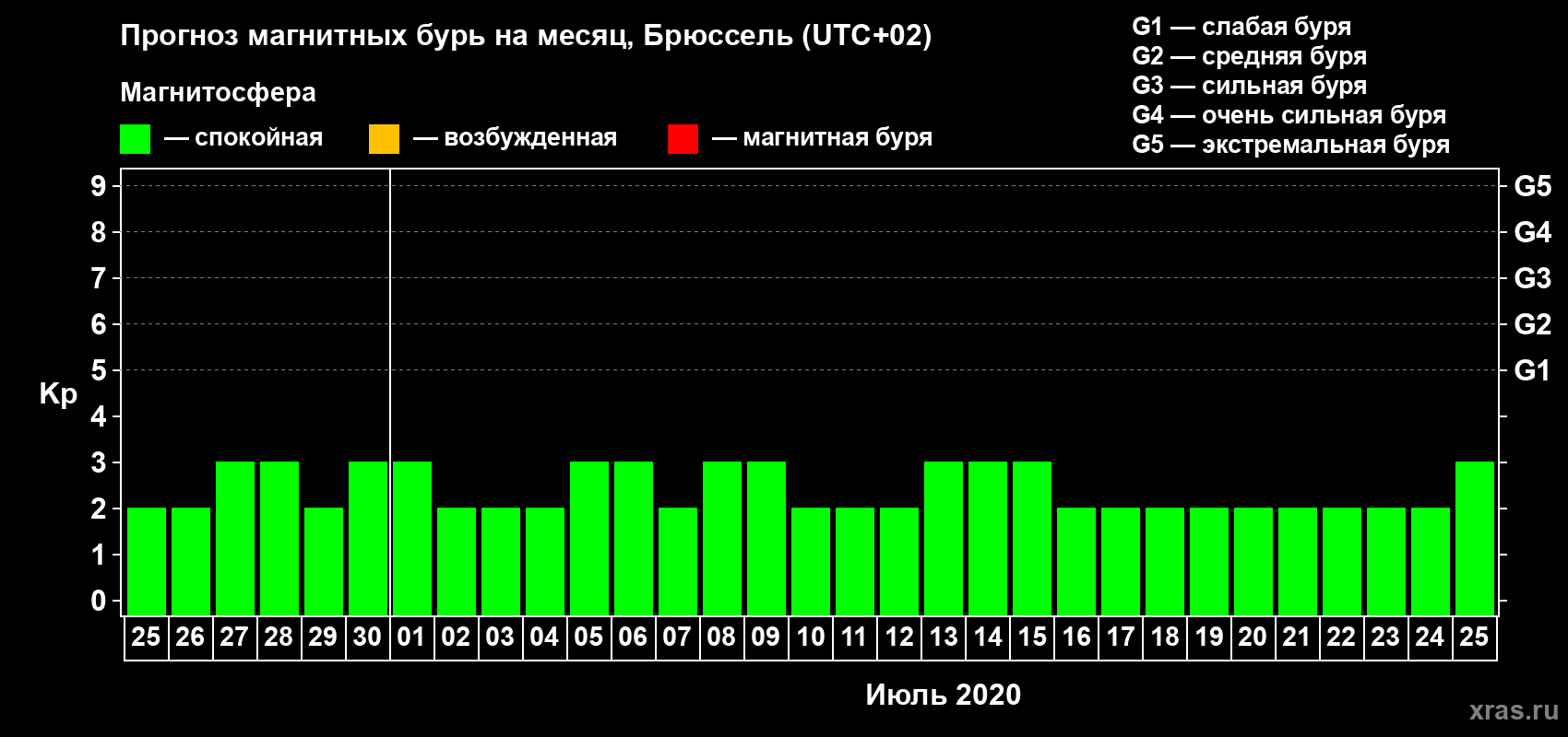 Прогноз магнитных бурь в Брюсселе — 25 июня 2020 года