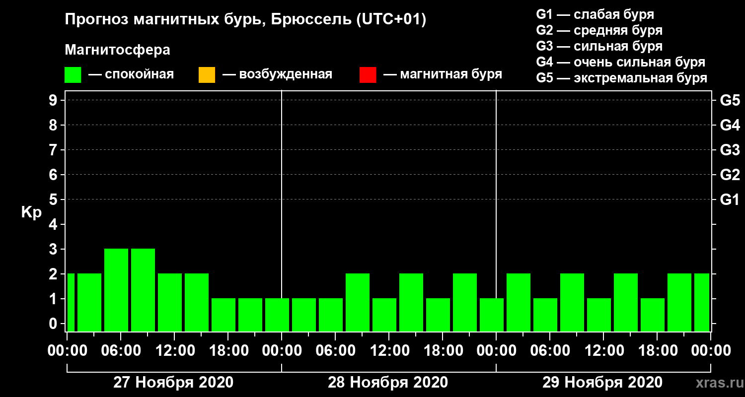 Прогноз магнитных бурь в Брюсселе — 27 ноября 2020 года