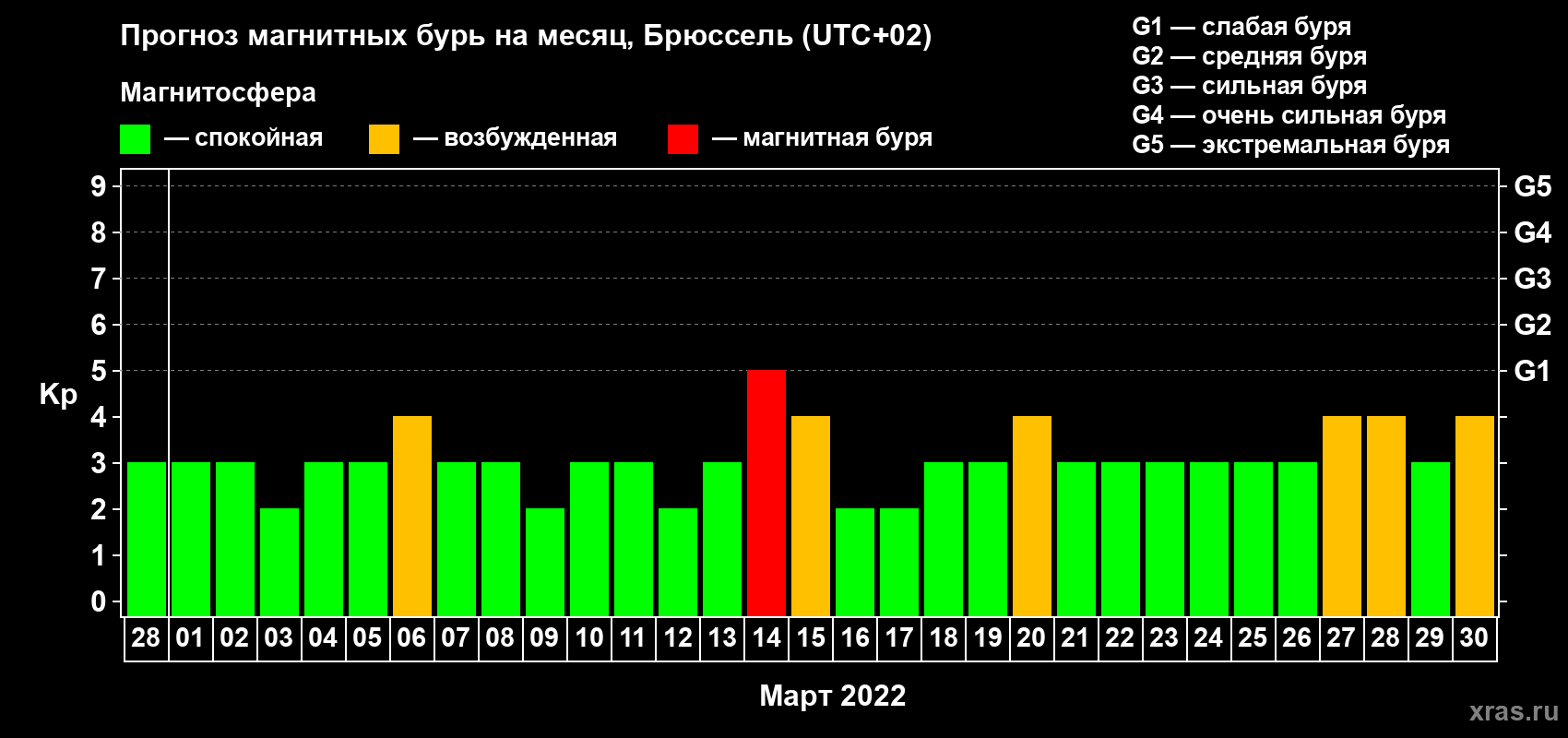 Прогноз магнитных бурь в Брюсселе — 28 февраля 2022 года
