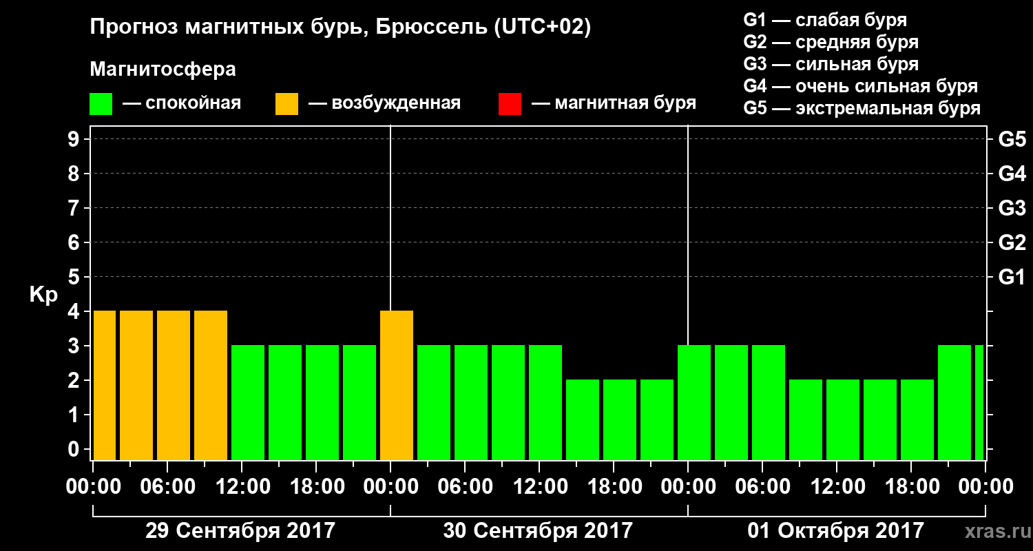 Прогноз магнитных бурь в Брюсселе — 29 сентября 2017 года