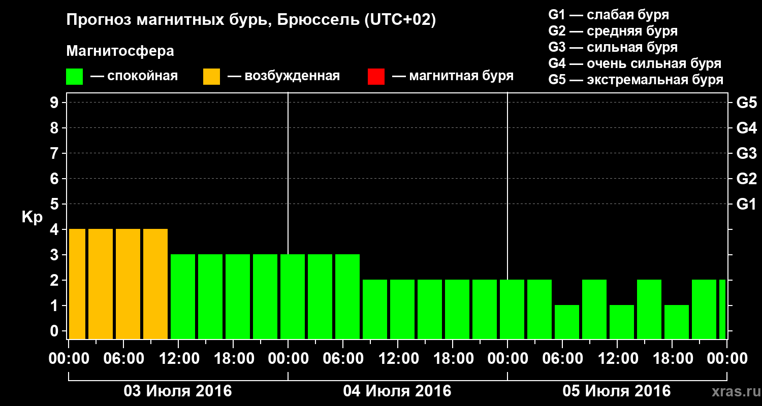 Прогноз магнитных бурь в Брюсселе — 3 июля 2016 года