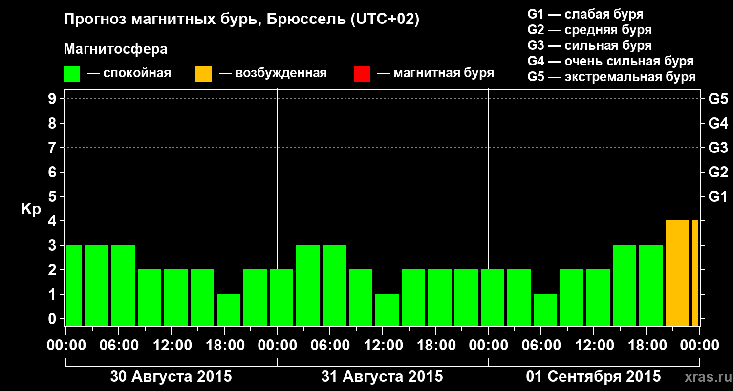 Прогноз магнитных бурь в Брюсселе — 30 августа 2015 года