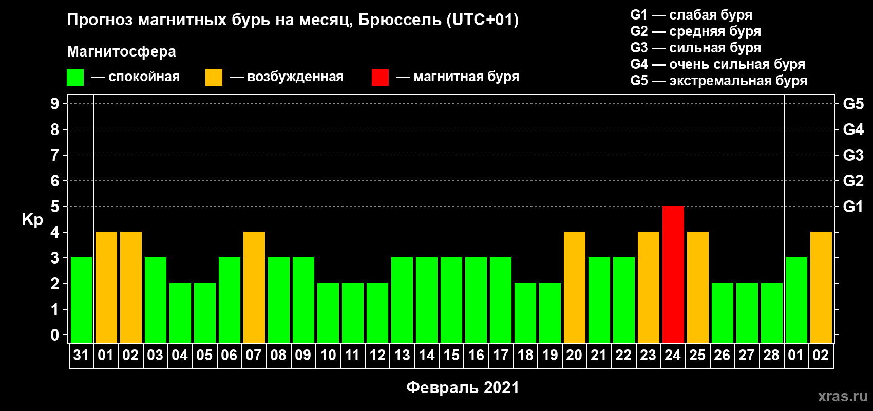Прогноз магнитных бурь в Брюсселе — 31 января 2021 года