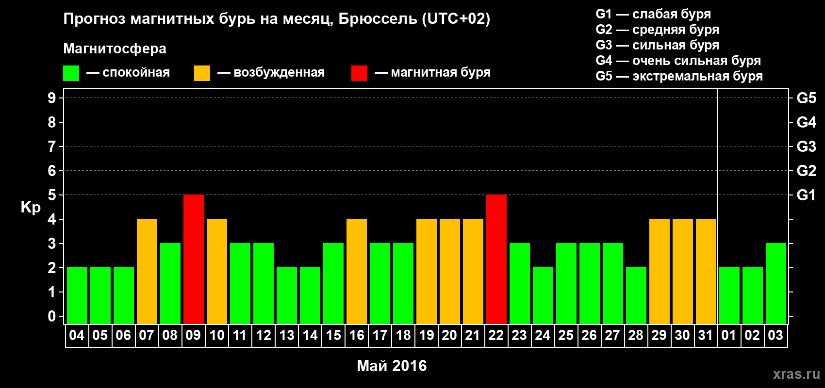 Прогноз магнитных бурь в Брюсселе — 4 мая 2016 года