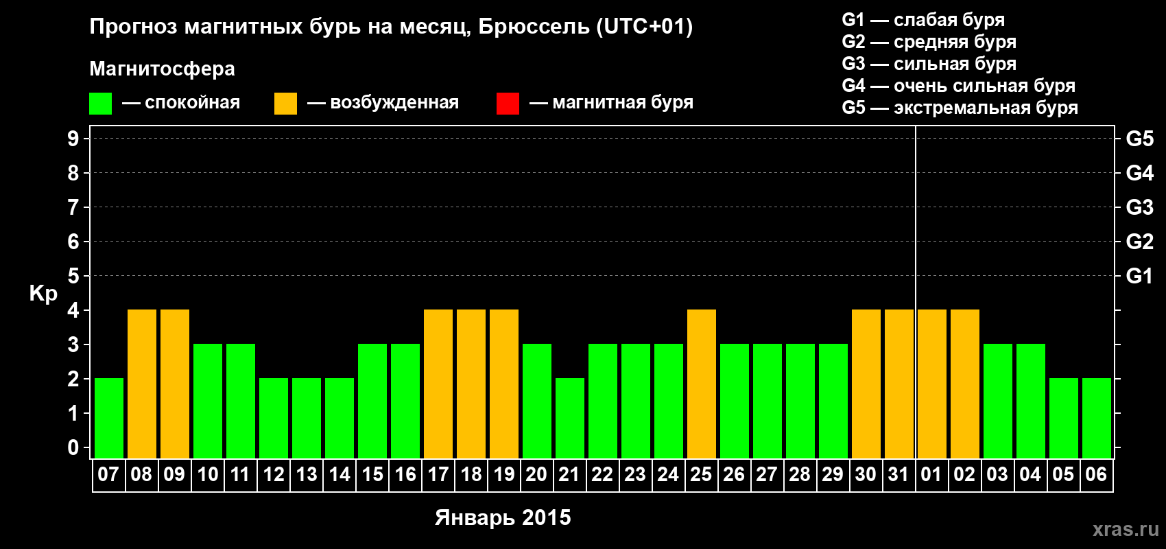 Прогноз магнитных бурь в Брюсселе — 7 января 2015 года