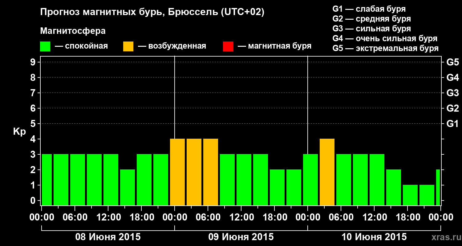 Прогноз магнитных бурь в Брюсселе — 8 июня 2015 года