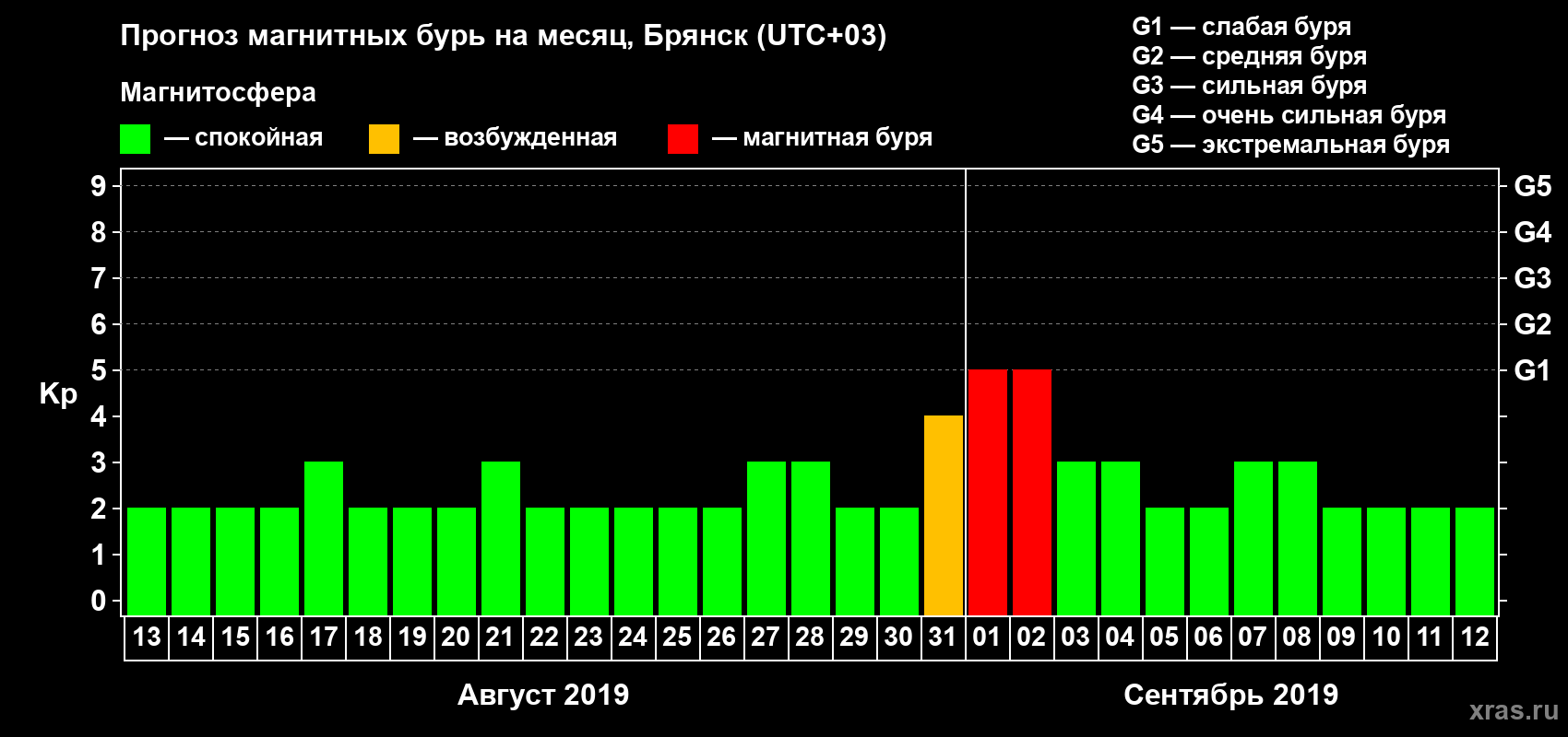 Прогноз магнитных бурь в Брянске — 13 августа 2019 года