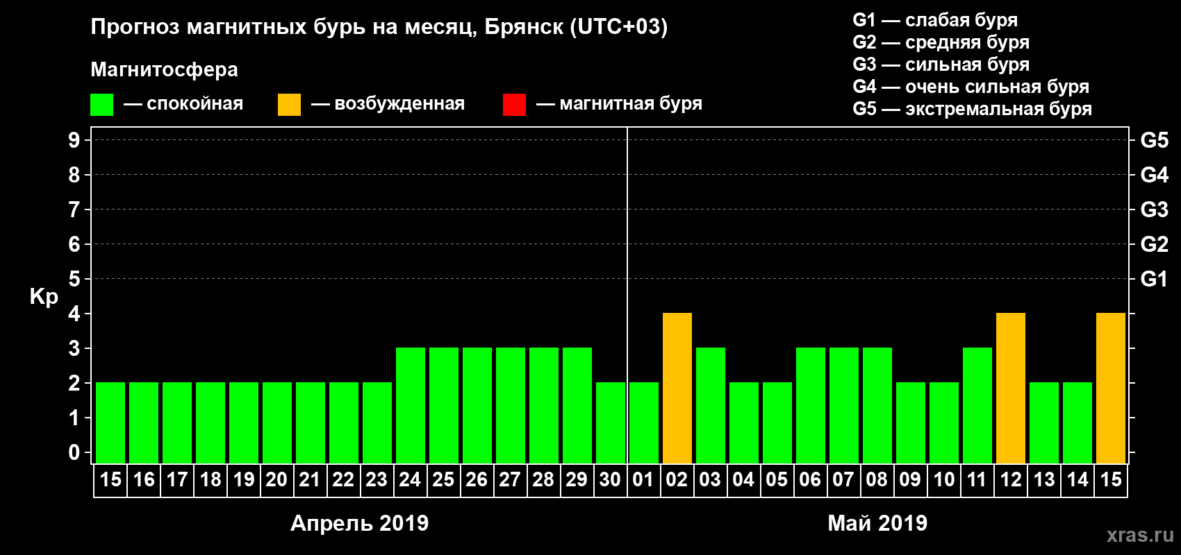 Прогноз магнитных бурь в Брянске — 15 апреля 2019 года
