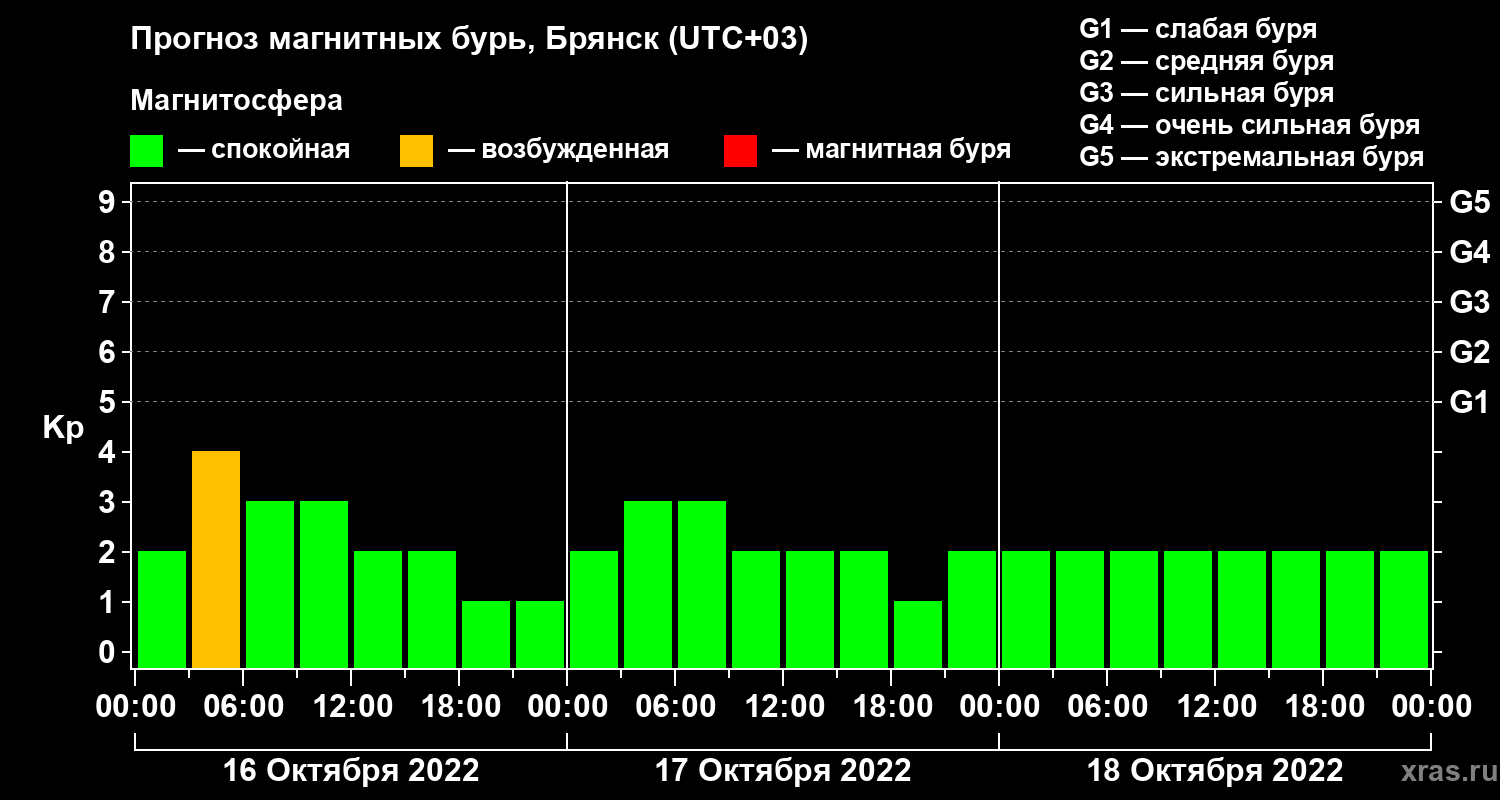 Прогноз магнитных бурь в Брянске — 16 октября 2022 года