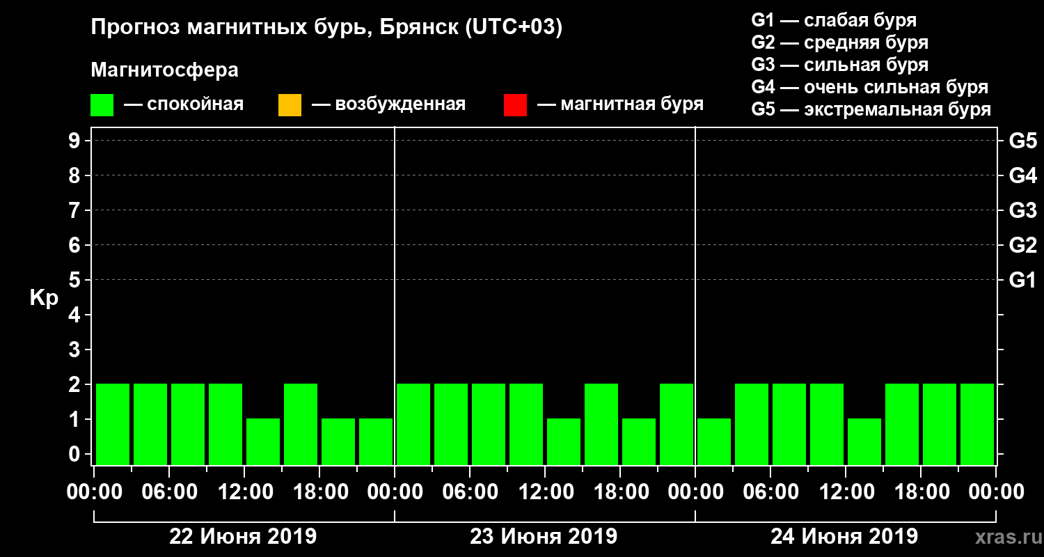 Прогноз магнитных бурь в Брянске — 22 июня 2019 года