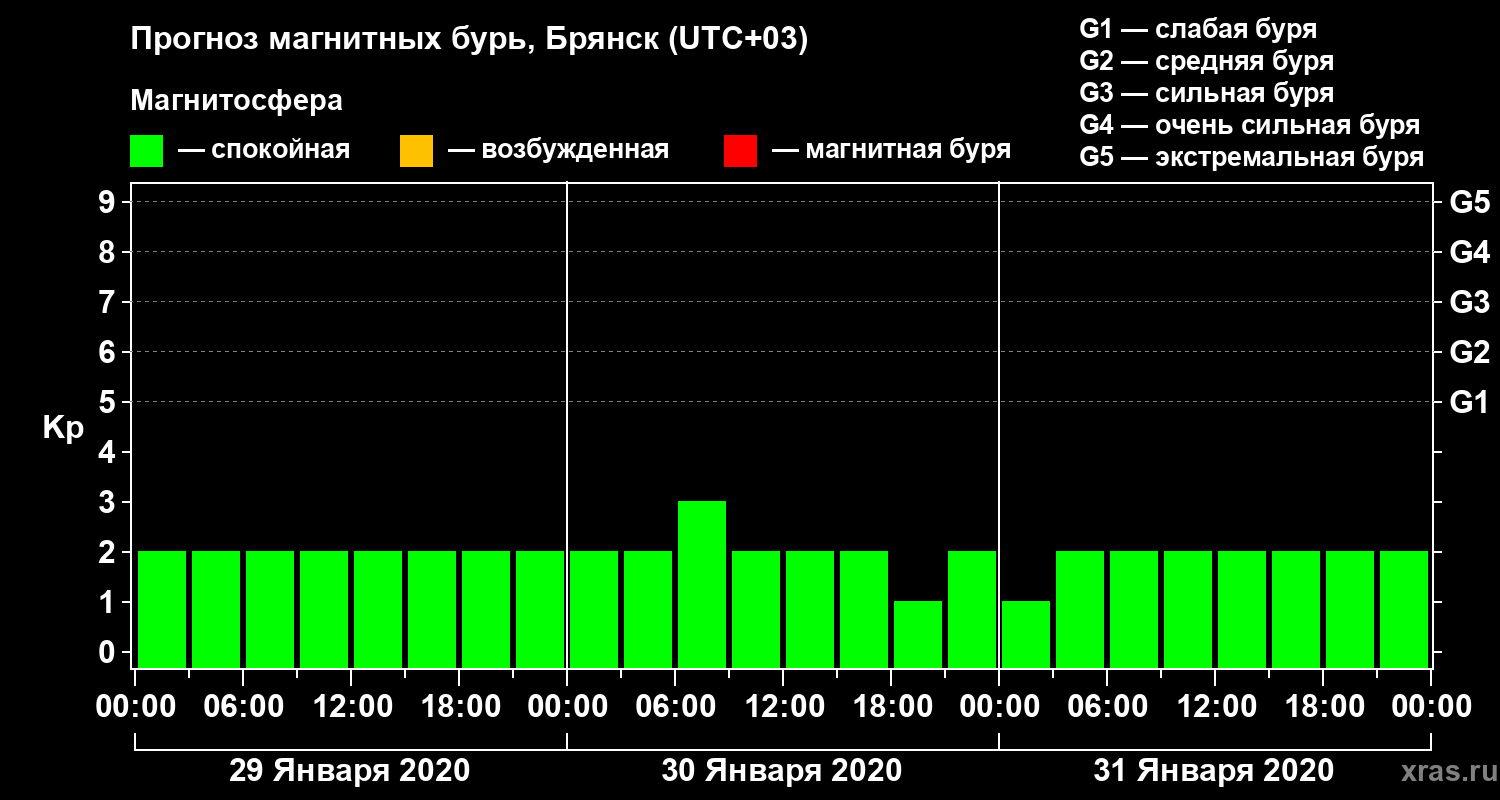 Прогноз магнитных бурь в Брянске на 29 января 2020 года