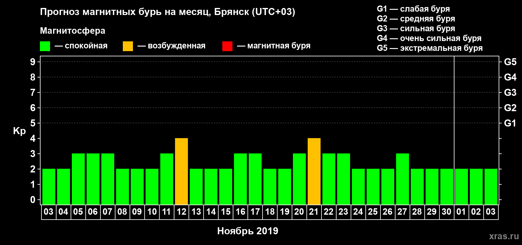 Прогноз магнитных бурь в Брянске — 3 ноября 2019 года