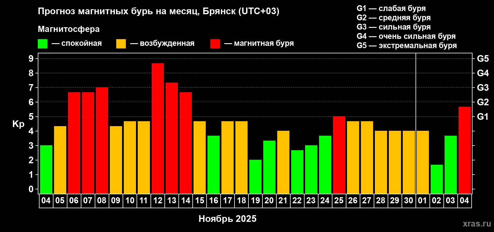 Прогноз магнитных бурь в Брянске — 4 ноября 2025 года