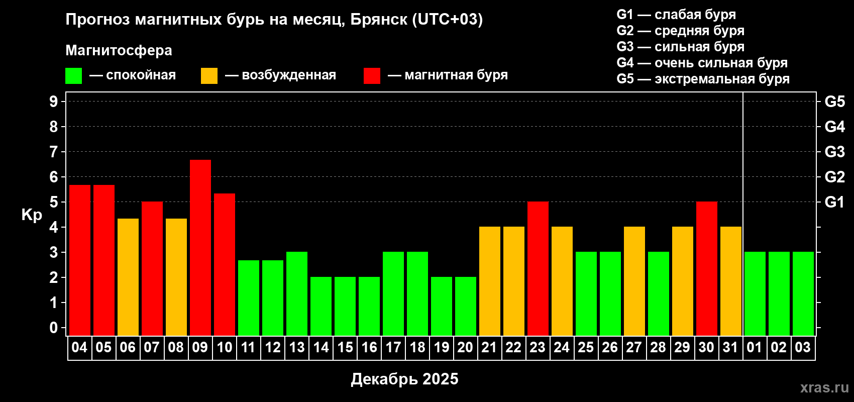 Прогноз магнитных бурь в Брянске — 4 декабря 2025 года