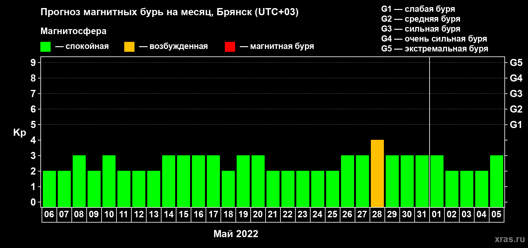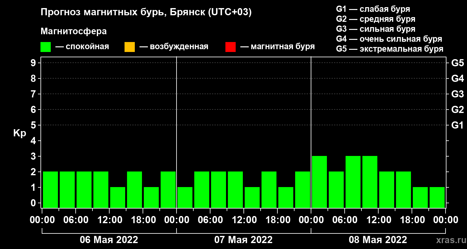 Прогноз магнитных бурь в Брянске — 6 мая 2022 года