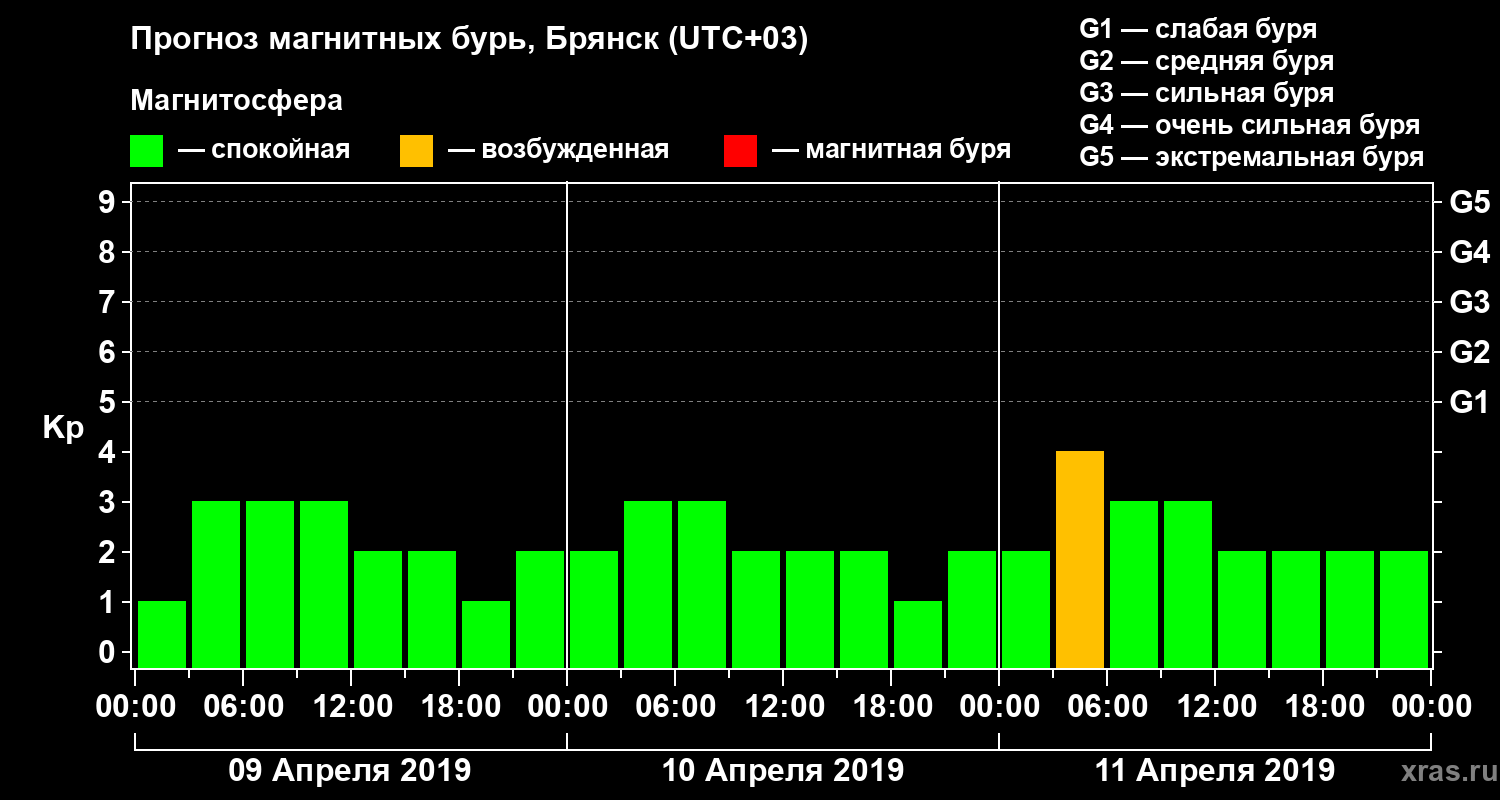 Прогноз магнитных бурь в Брянске — 9 апреля 2019 года