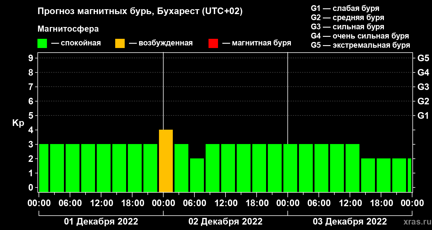 Прогноз магнитных бурь в Бухаресте — 1 декабря 2022 года