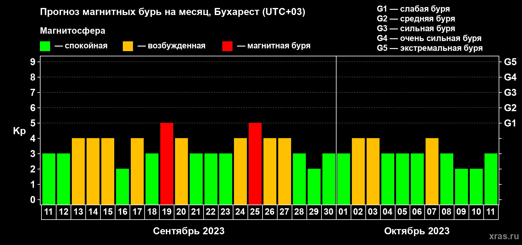 Прогноз магнитных бурь в Бухаресте — 11 сентября 2023 года