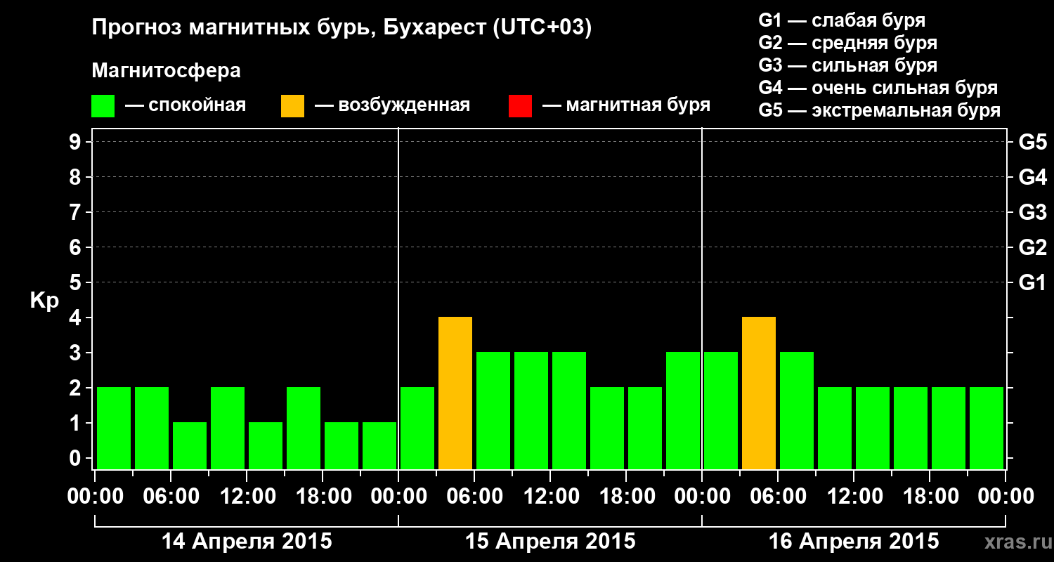 Прогноз магнитных бурь в Бухаресте — 14 апреля 2015 года