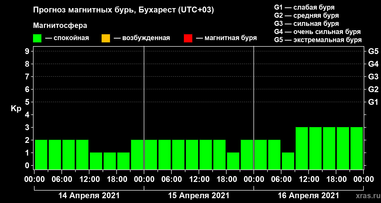 Прогноз магнитных бурь в Бухаресте — 14 апреля 2021 года