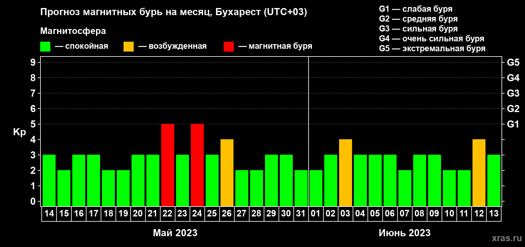 Прогноз магнитных бурь в Бухаресте на 14 мая 2023 года