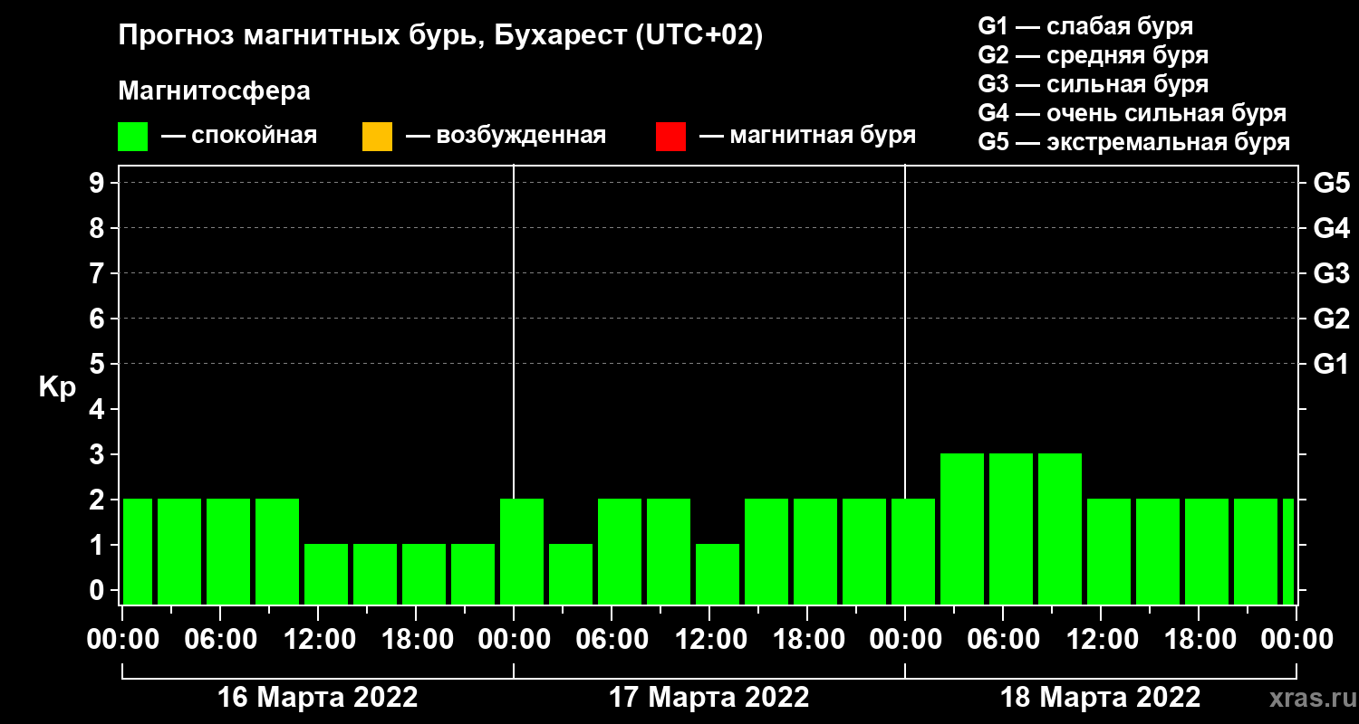 Прогноз магнитных бурь в Бухаресте — 16 марта 2022 года