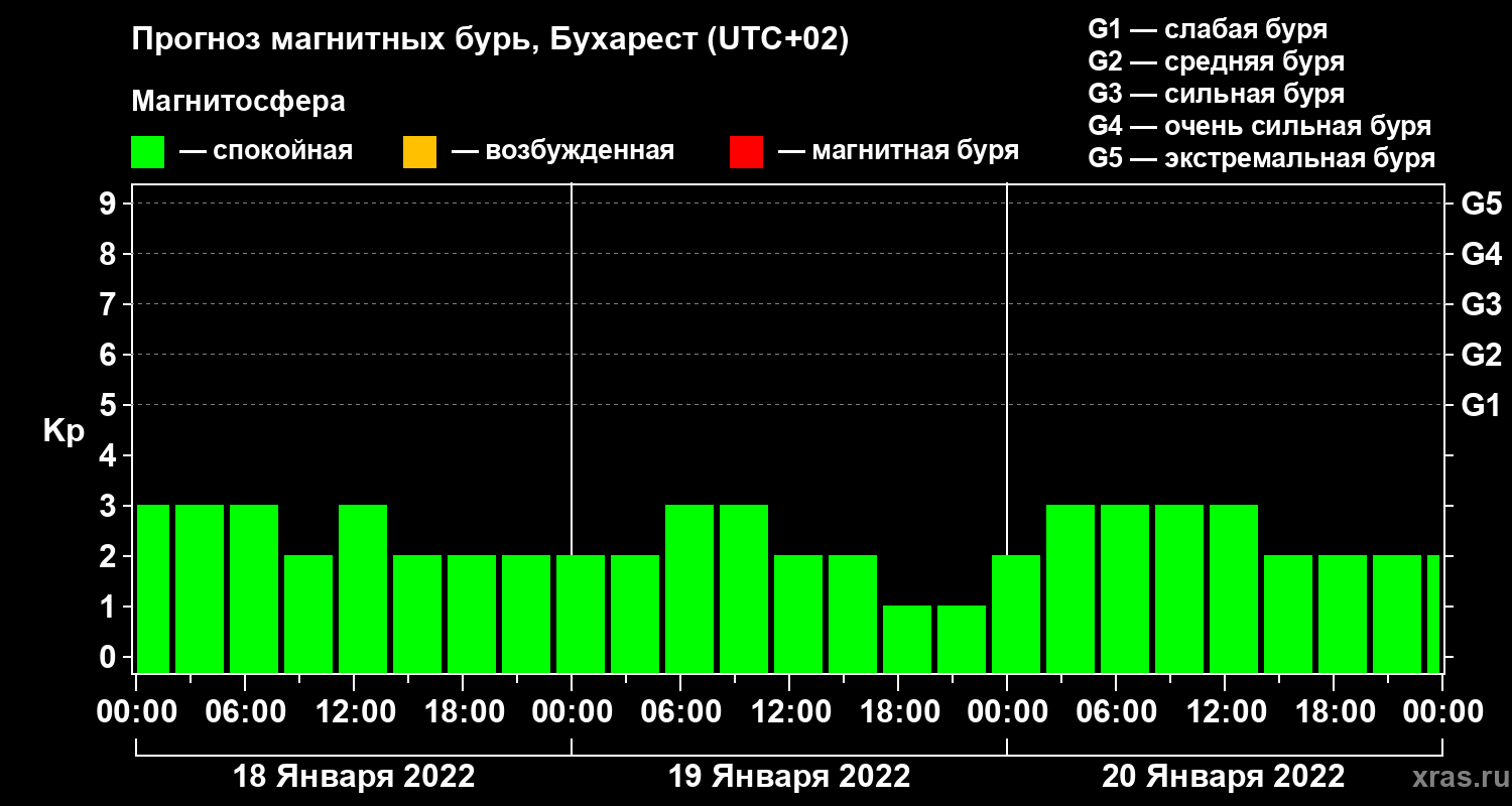 Прогноз магнитных бурь в Бухаресте — 18 января 2022 года