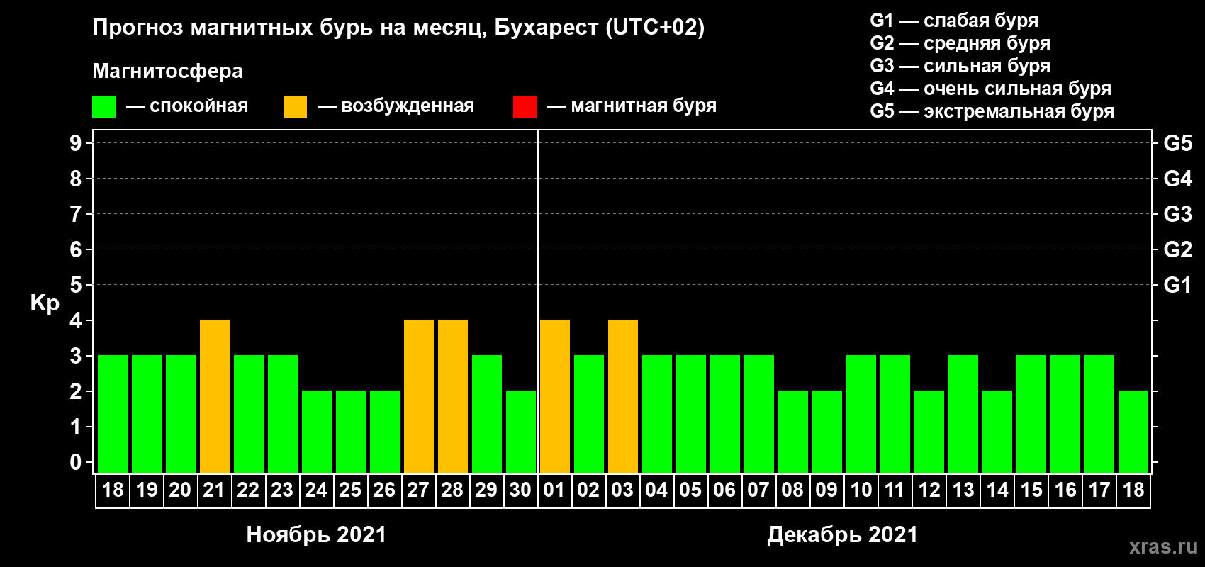Прогноз магнитных бурь в Бухаресте — 18 ноября 2021 года