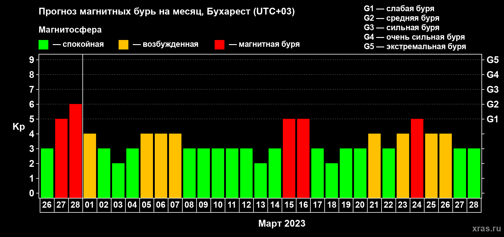 Прогноз магнитных бурь в Бухаресте — 26 февраля 2023 года