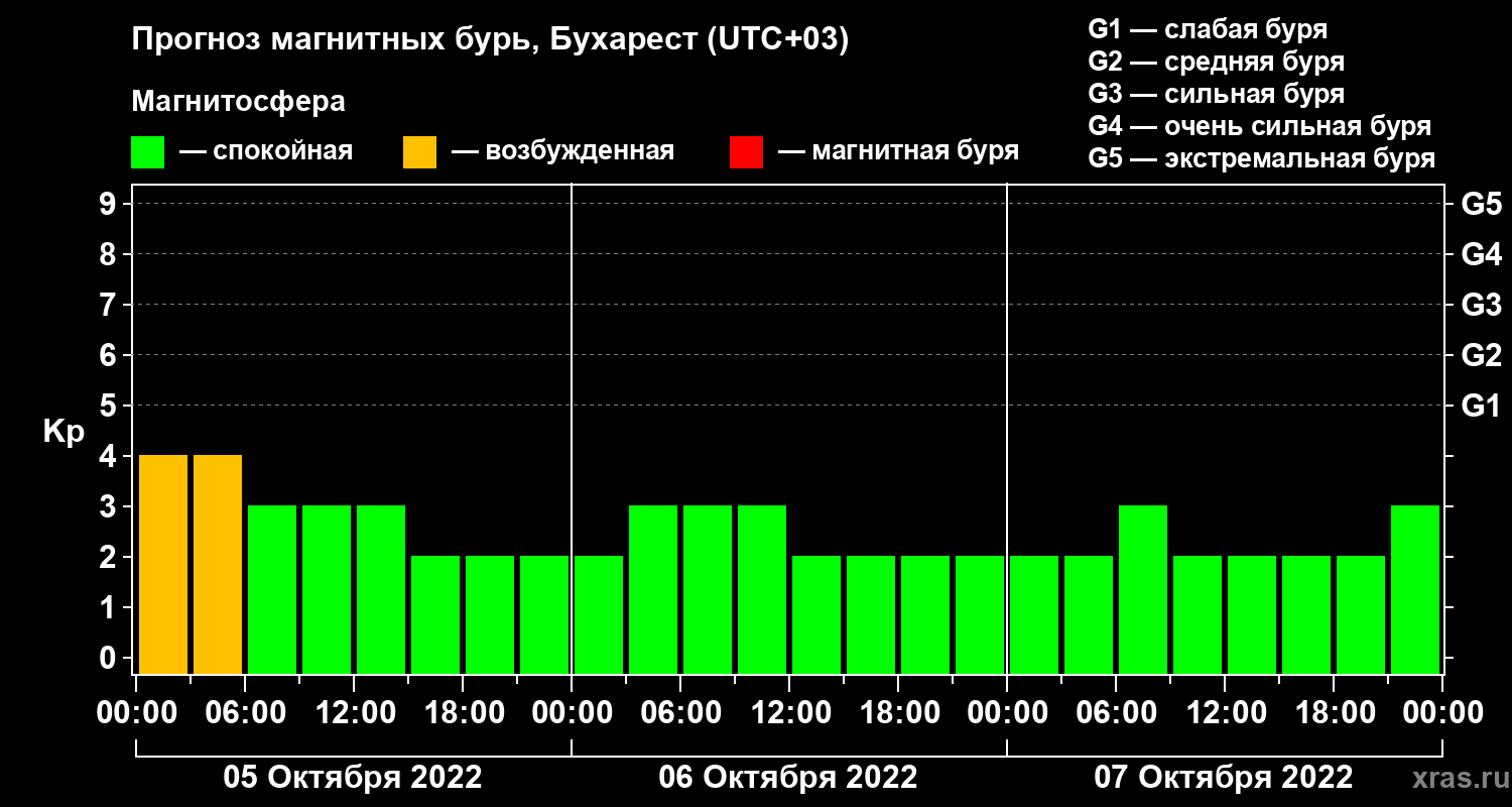 Прогноз магнитных бурь в Бухаресте — 5 октября 2022 года