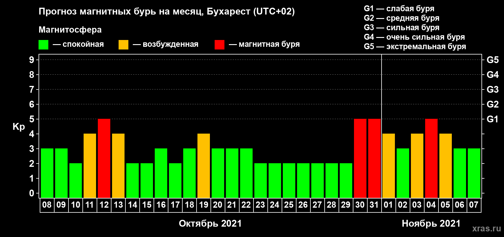 Прогноз магнитных бурь в Бухаресте — 8 октября 2021 года