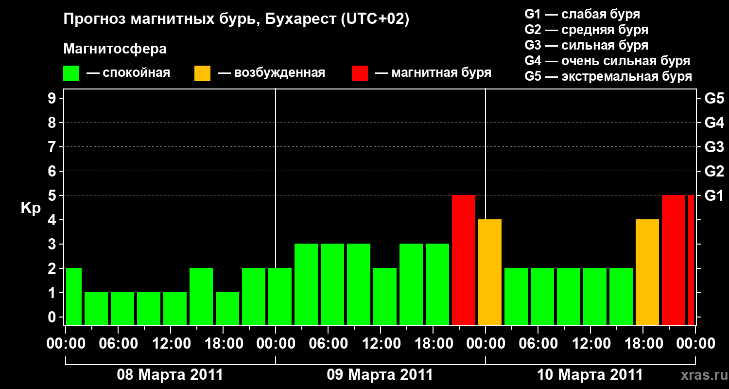 Прогноз магнитных бурь в Бухаресте — 8 марта 2011 года