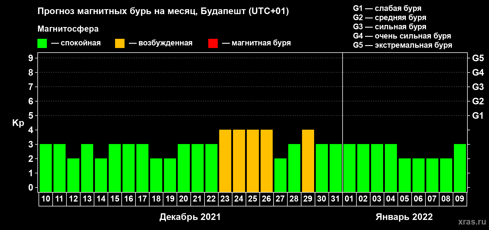 Прогноз магнитных бурь в Будапеште — 10 декабря 2021 года