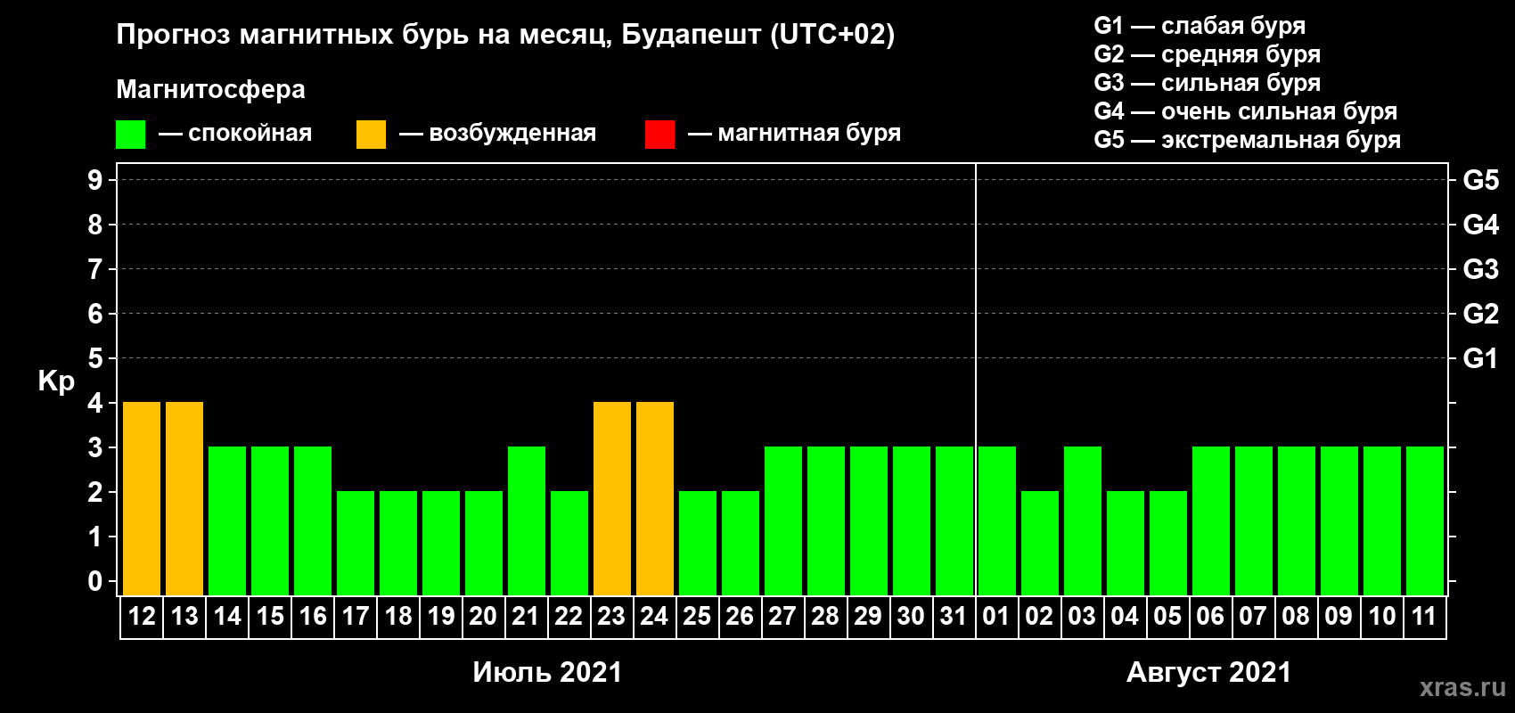 Прогноз магнитных бурь в Будапеште — 12 июля 2021 года
