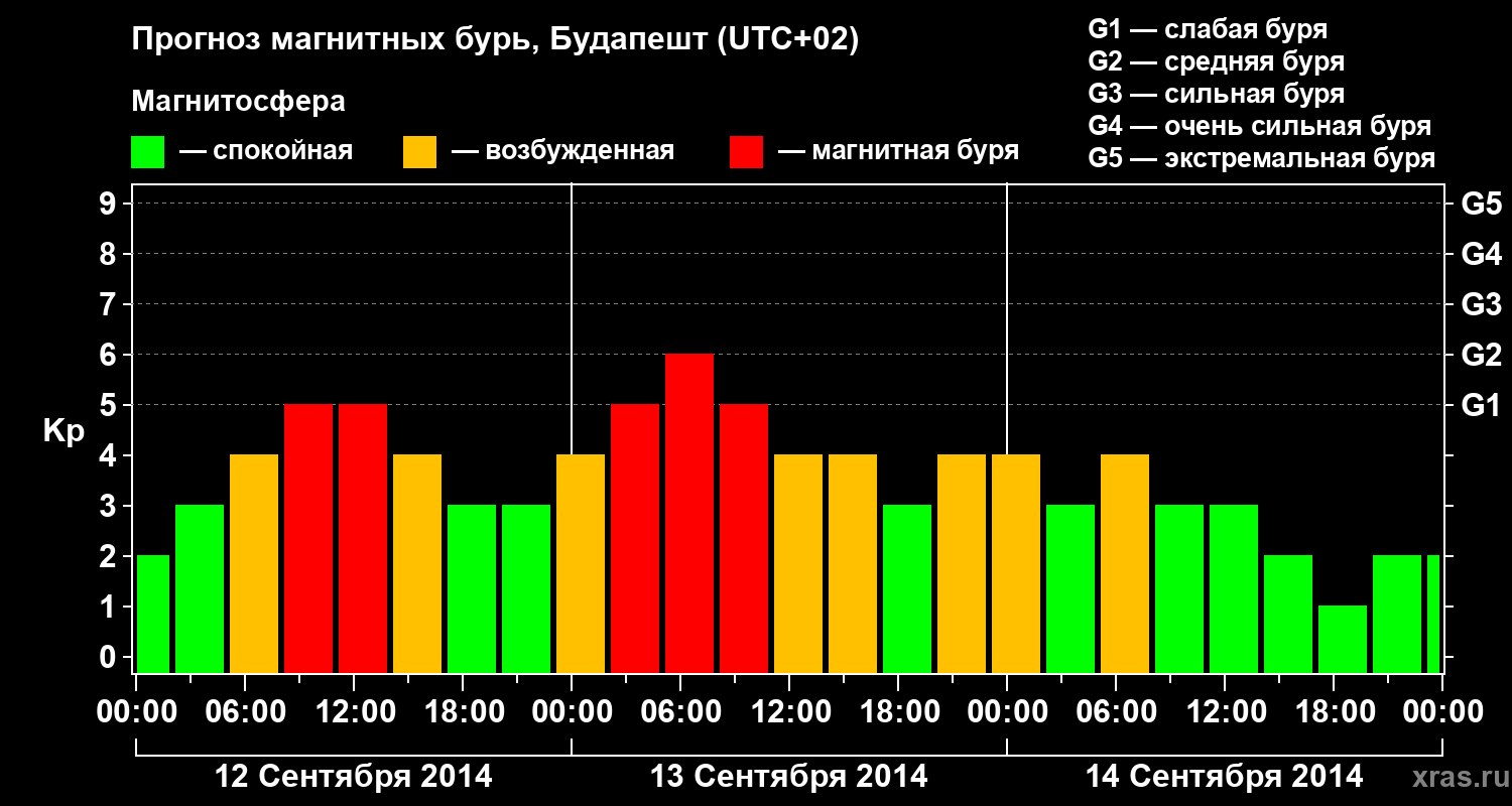 Прогноз магнитных бурь в Будапеште — 12 сентября 2014 года