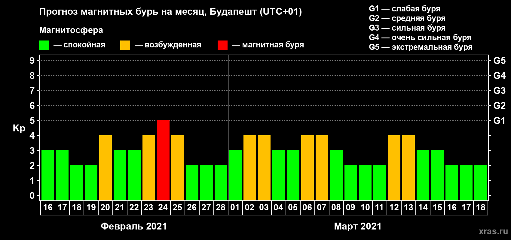 Прогноз магнитных бурь в Будапеште — 16 февраля 2021 года