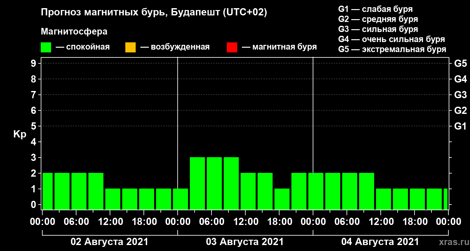 Прогноз магнитных бурь в Будапеште — 2 августа 2021 года