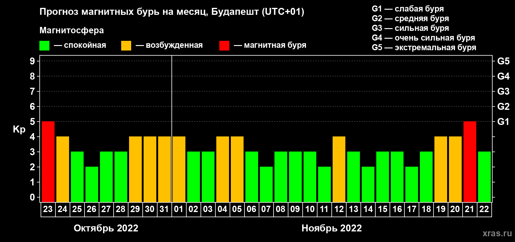 Прогноз магнитных бурь в Будапеште — 23 октября 2022 года