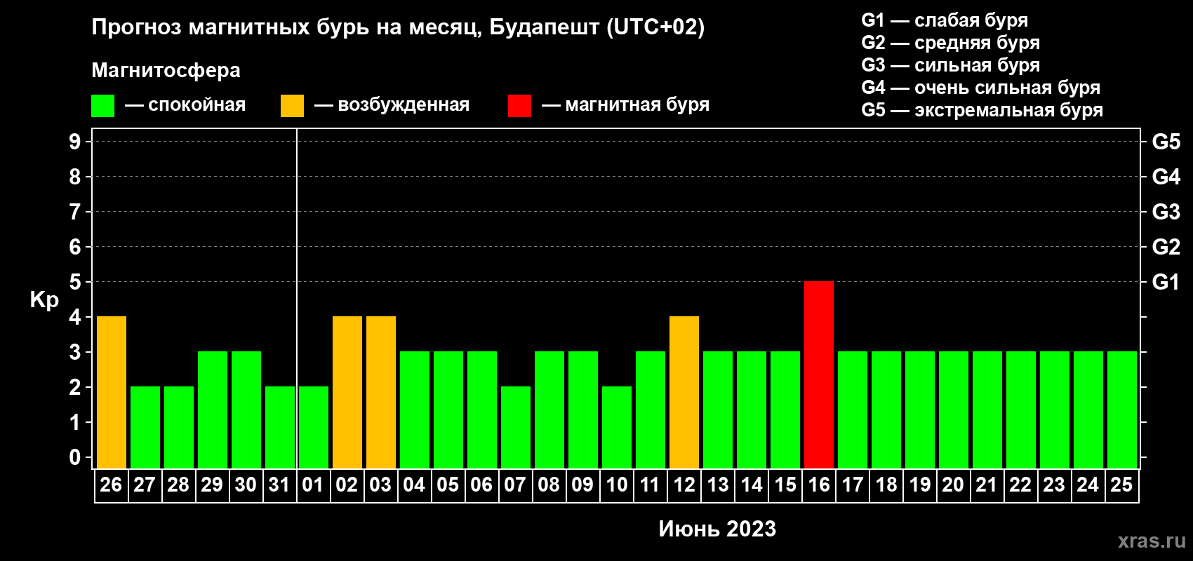 Прогноз магнитных бурь в Будапеште — 26 мая 2023 года