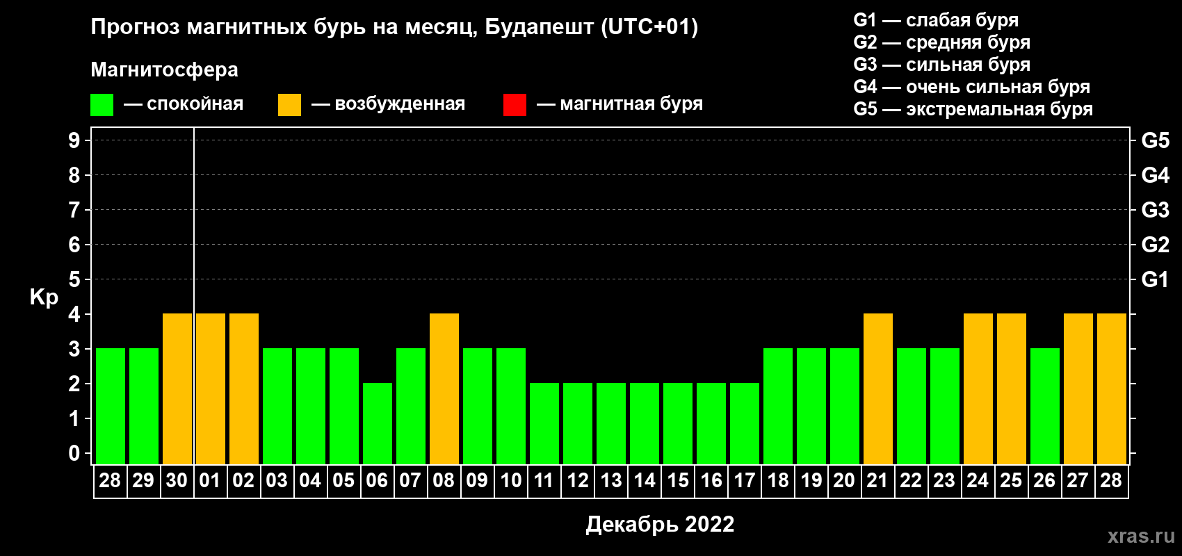 Прогноз магнитных бурь в Будапеште — 28 ноября 2022 года