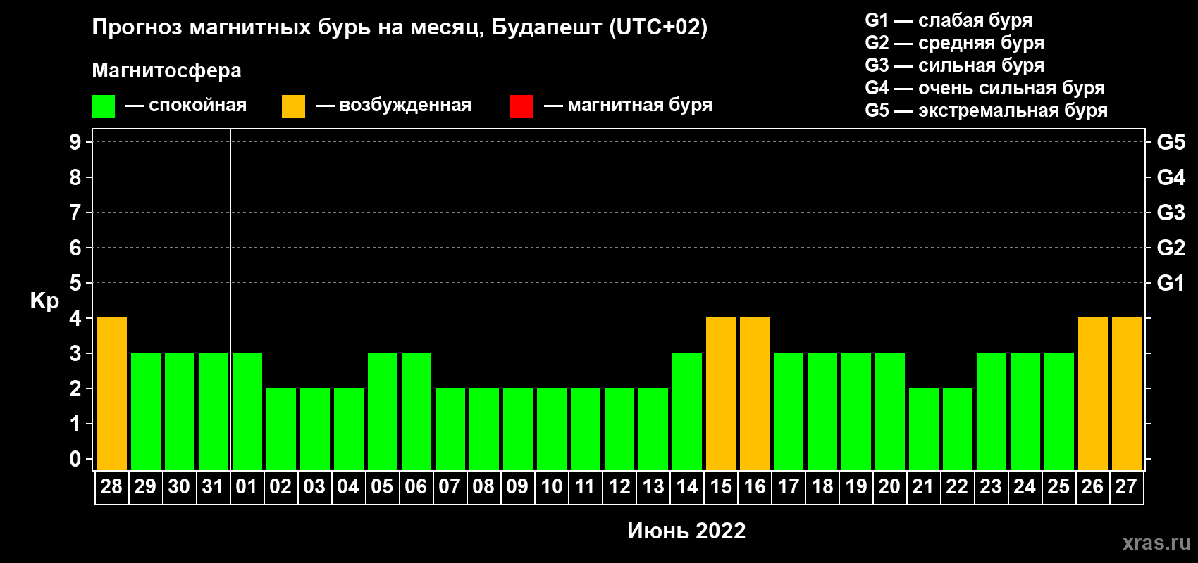 Прогноз магнитных бурь в Будапеште — 28 мая 2022 года