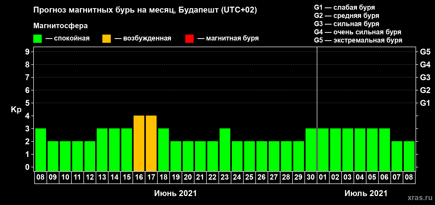 Прогноз магнитных бурь в Будапеште — 8 июня 2021 года