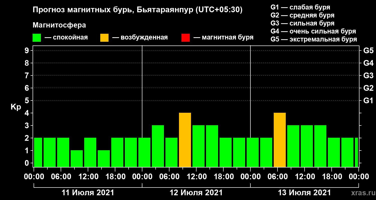 Прогноз магнитных бурь в Бьятараянпуре — 11 июля 2021 года