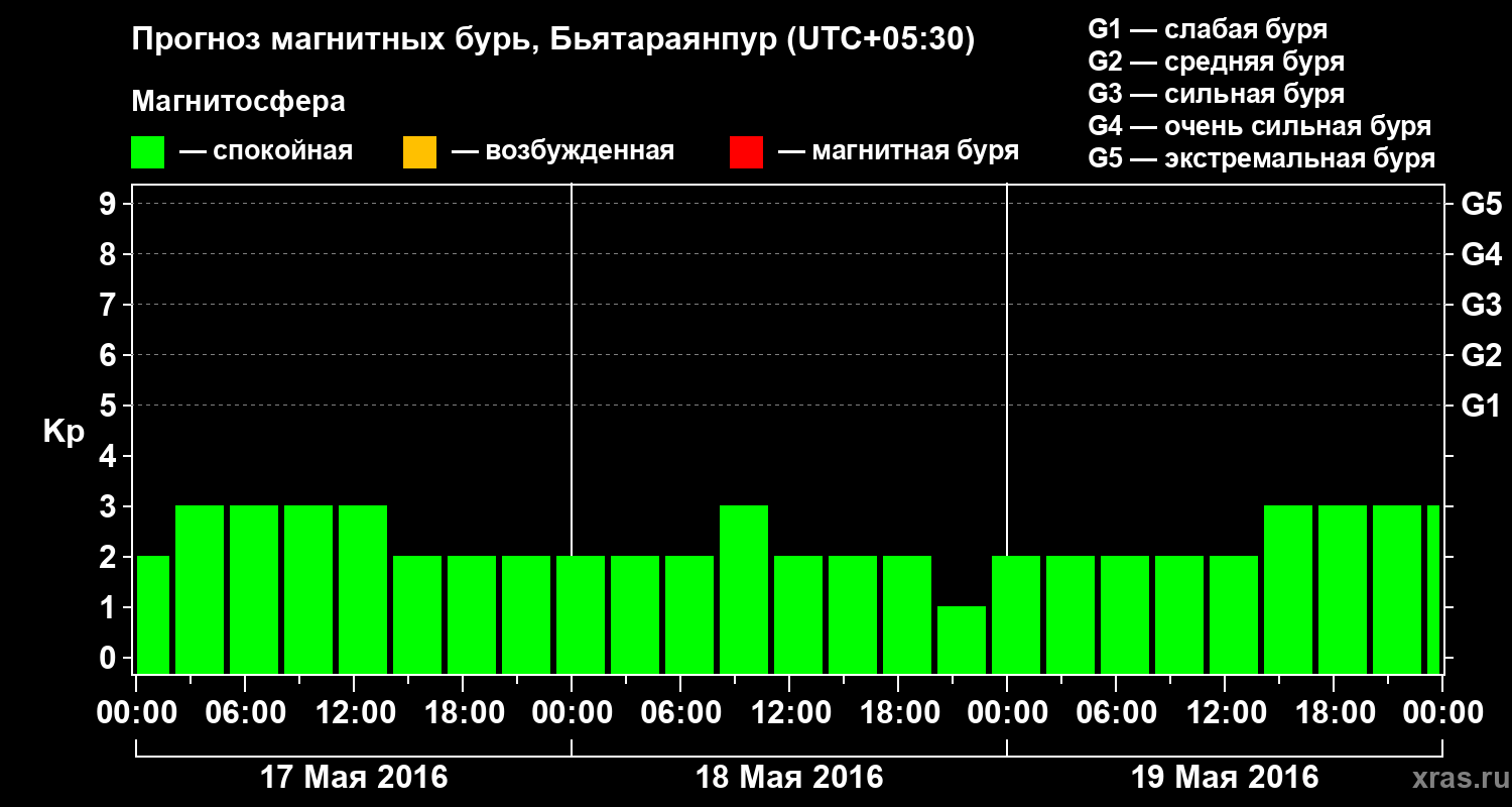 Прогноз магнитных бурь в Бьятараянпуре на 17 мая 2016 года
