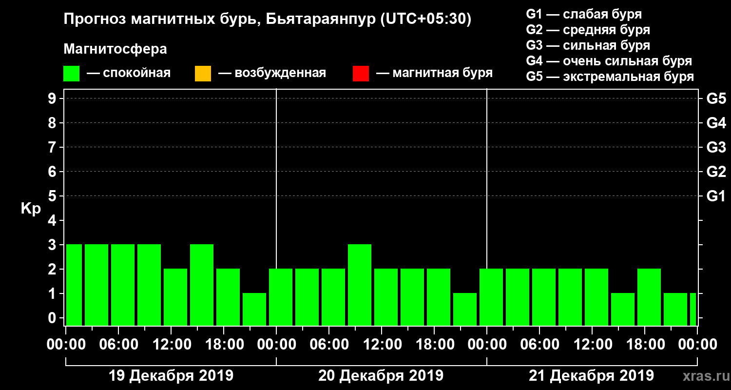 Прогноз магнитных бурь в Бьятараянпуре — 19 декабря 2019 года